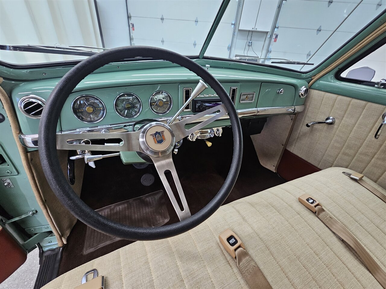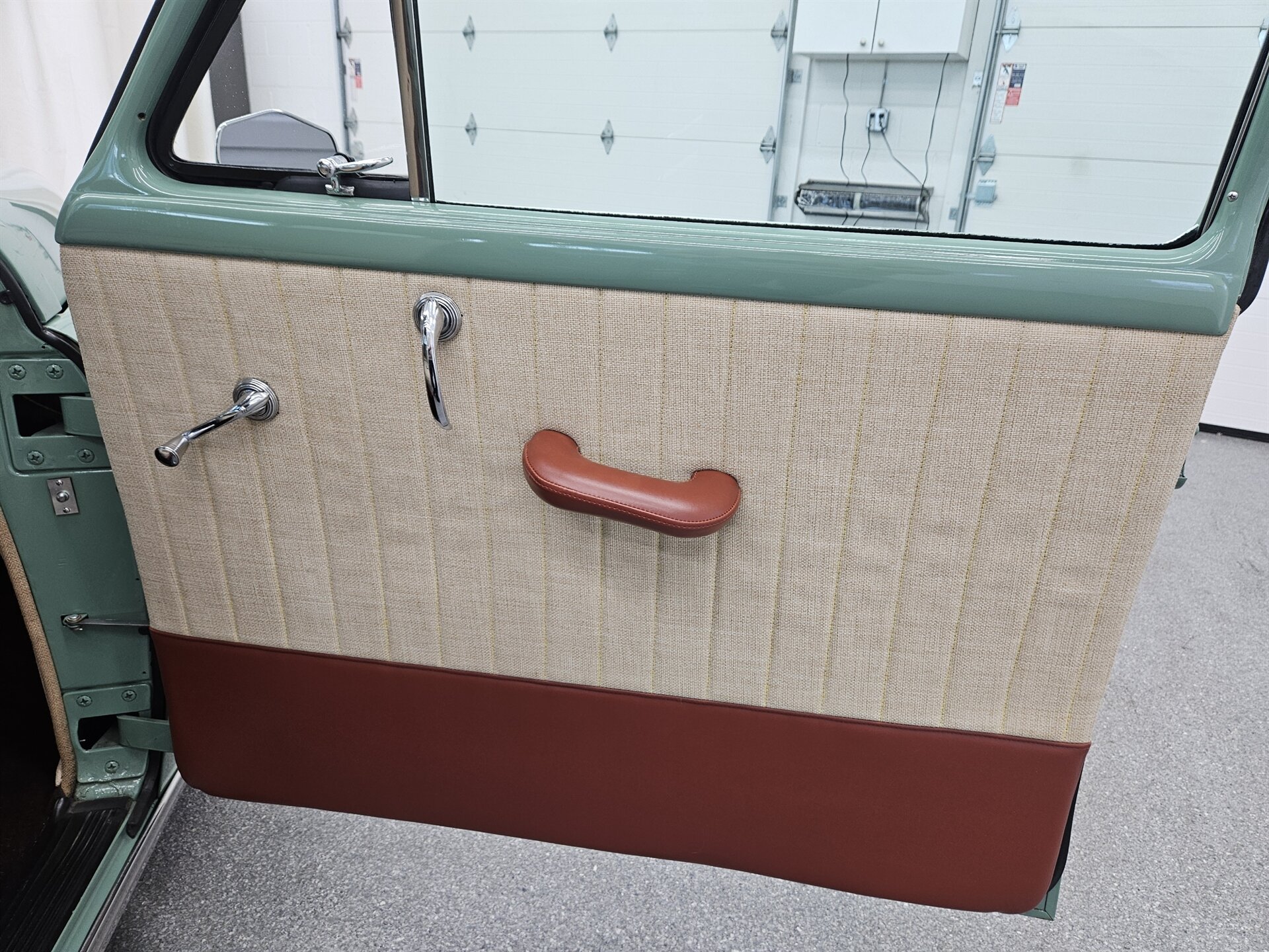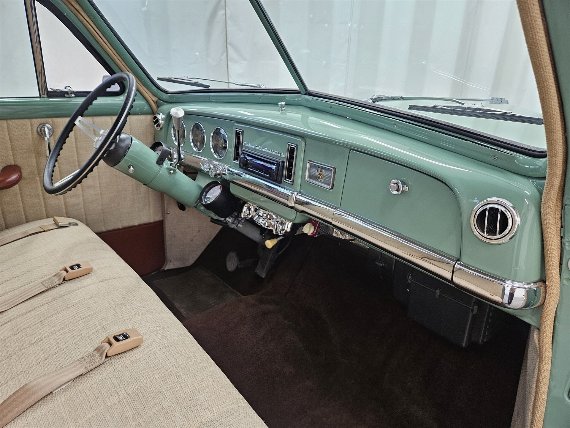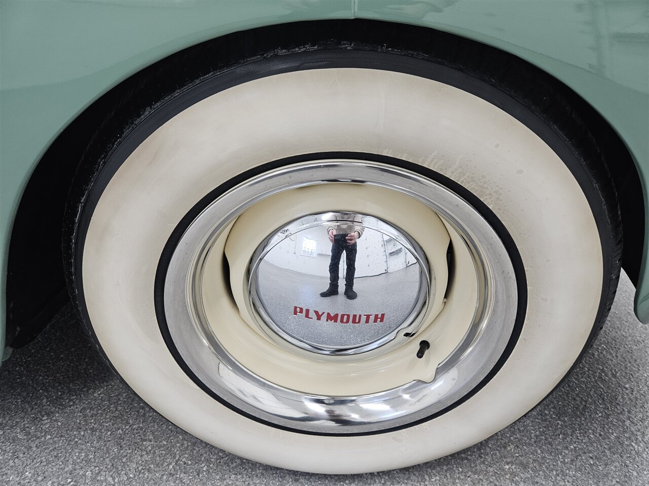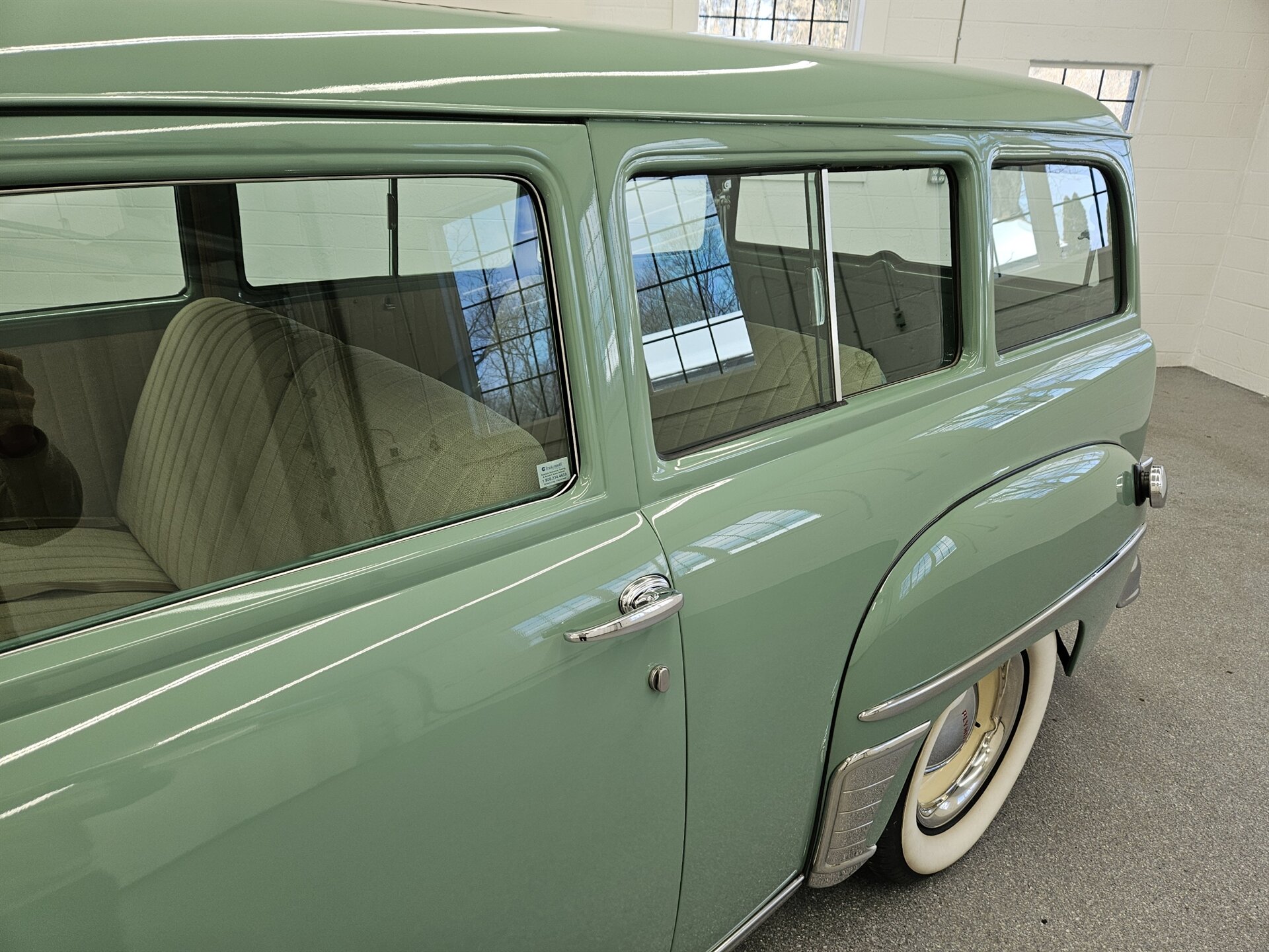You are viewing a beautiful 1950 Plymouth Deluxe Suburban that has been thoughtfully updated while still retaining its classic character. Finished in an attractive green exterior over a white tweed and brown interior, this Suburban presents a timeless and eye-catching look. Under the hood, it is powered by a Chevy 350 V8 engine paired with a TH350 automatic transmission, offering strong, reliable performance along with modern drivability. Comfort and handling have been enhanced with power rack-and-pinion steering, power front disc brakes, a 9" rear axle, and air conditioning, making this classic enjoyable for both cruising and longer drives. Additional features include tilt steering, a Kenwood stereo system, folding rear seat, sliding side windows, 15" steel wheels, and wide whitewall tires that complete the vintage appearance. This Plymouth runs great, drives smoothly, and consistently turns heads wherever it goes. Contact us today to schedule your test drive and experience this unique blend of classic style and modern upgrades for yourself.