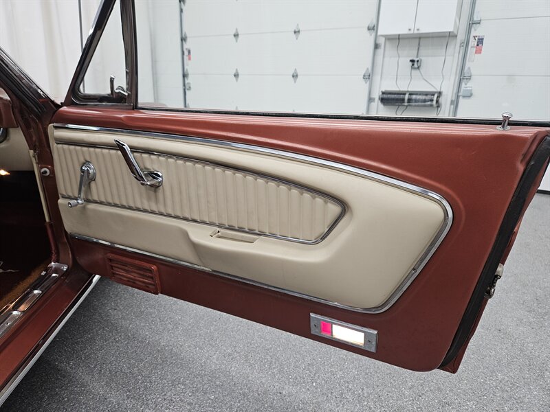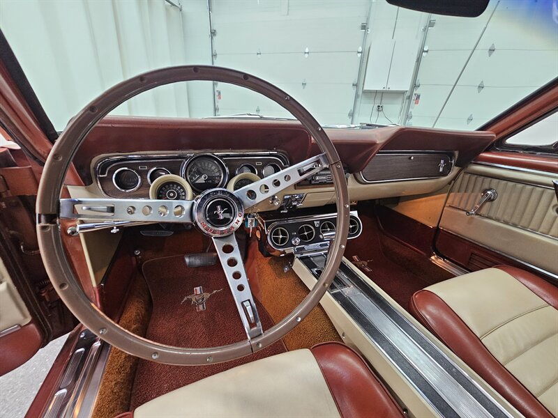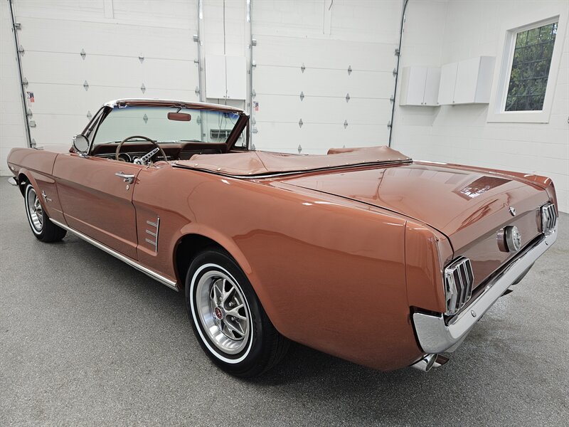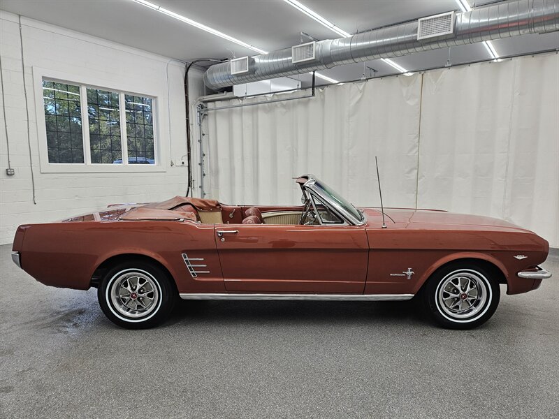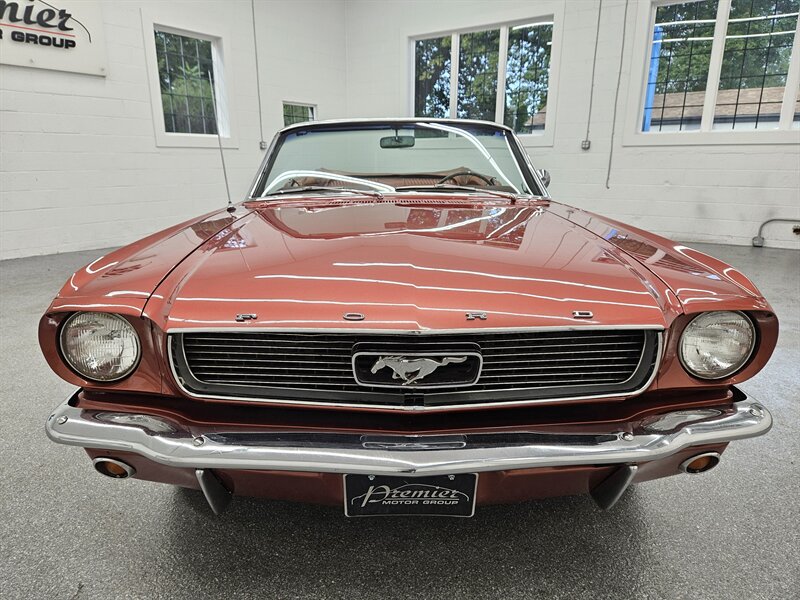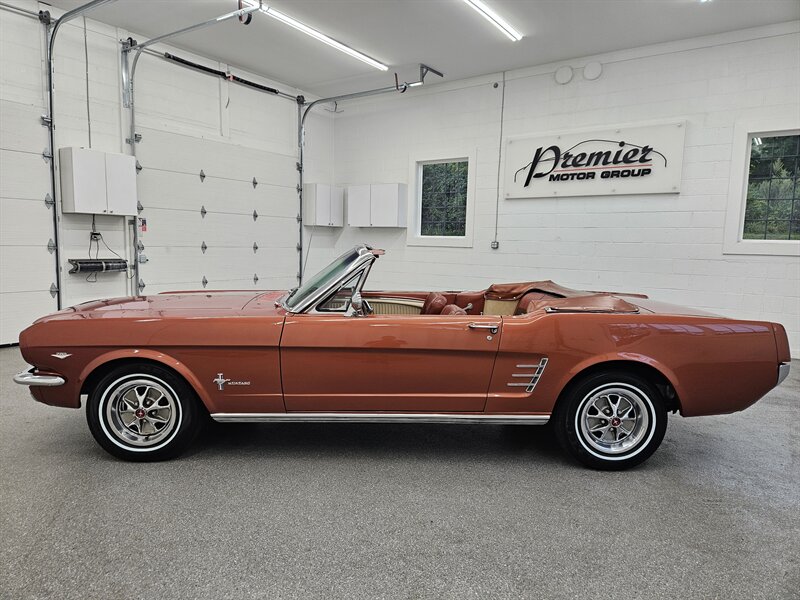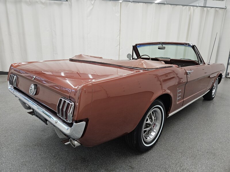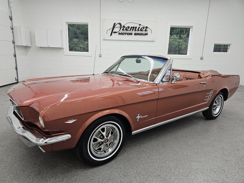Presenting a beautifully maintained 1966 Ford Mustang 289 Convertible, finished in its original "V" code Emberglo exterior paired with the rare "64A" Medium Emberglo and Parchment crinkle vinyl Pony interior. This classic is exceptionally well-optioned, featuring a Rally Pac, factory air conditioning, Pony interior package, and more. Recently serviced and in excellent running condition, this Mustang is ready to be driven and enjoyed. Contact us to schedule your test drive today!