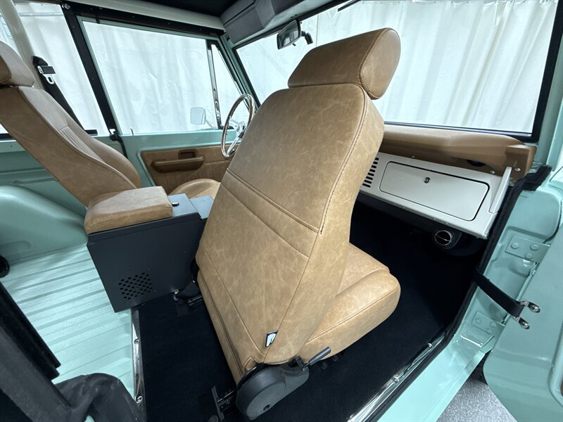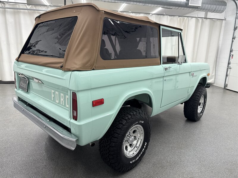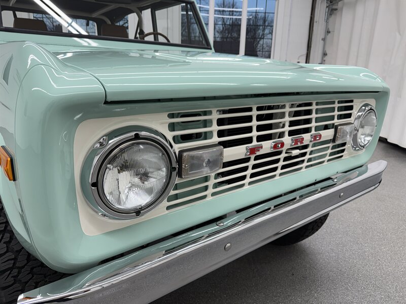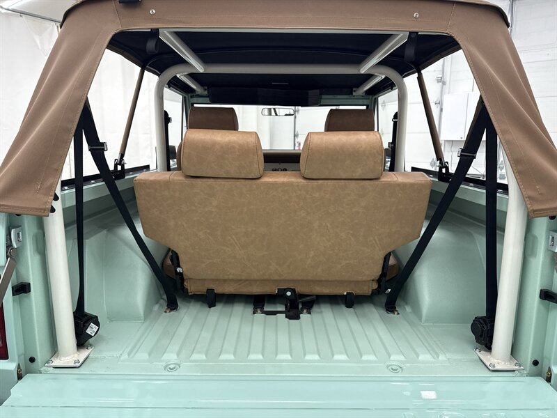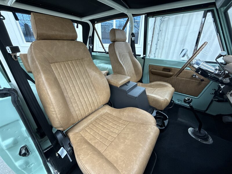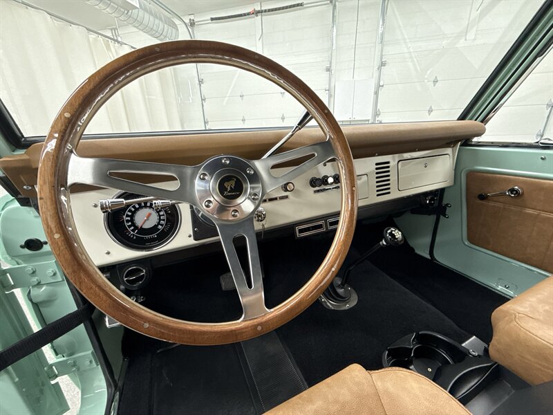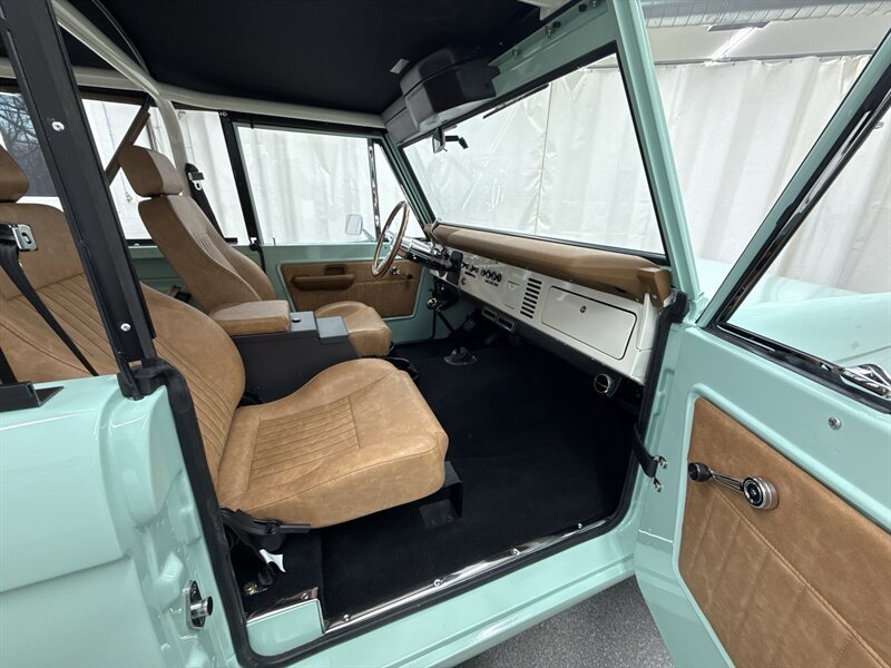 This beautifully restored 1967 Ford Bronco has just completed a meticulous, no-expense-spared overhaul and is now ready for its next owner. It features a brand-new Hartman body finished in Light Jade, mounted on a heavy-duty TDK frame with updated radius arms to blend classic Bronco character with modern durability. The interior is tastefully appointed with deerskin-tan pleated upholstery, black carpeting, and custom touches that elevate the cabin’s look and feel. Power comes from a new 302 crate engine with an upgraded roller cam and one-piece rear main seal, paired to a rebuilt C4 automatic transmission for smooth, reliable performance. Comfort and capability are further enhanced by Vintage Air conditioning, a tilt steering column, a new center console with Bluetooth audio, premium TBP locking hubs, a custom white-painted roll bar, and a new cinnamon Rampage soft top. The Bronco rides on 32" BFG KO2 tires wrapped around 15" polished alloy wheels, supported by a 2.5" Skyjacker lift, Borgeson heavy-duty power steering, an aluminum radiator, and Sniper EFI fuel injection. Every element of this build has been thoughtfully selected to create a Bronco that looks exceptional, drives confidently, and stands out in every way. Contact us today to schedule an appointment and experience this remarkable Bronco firsthand.