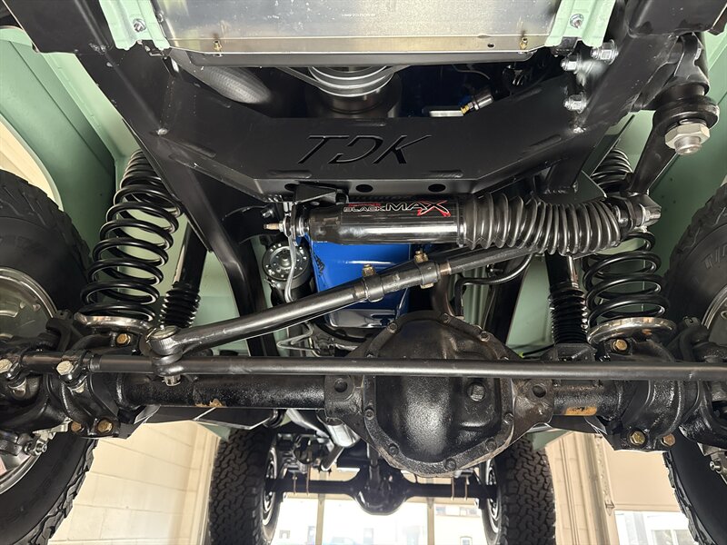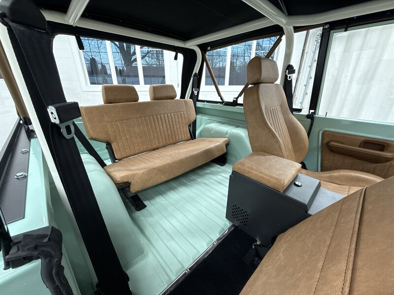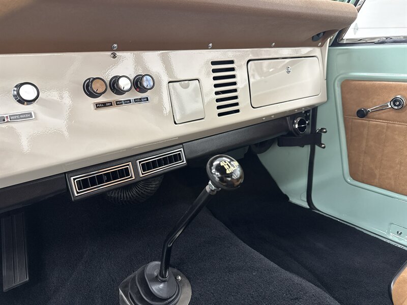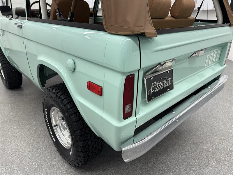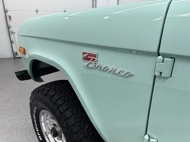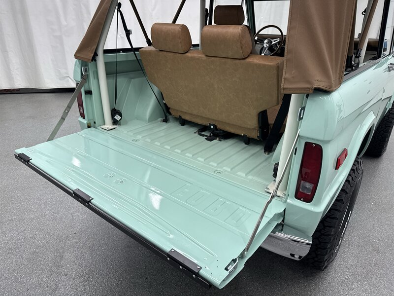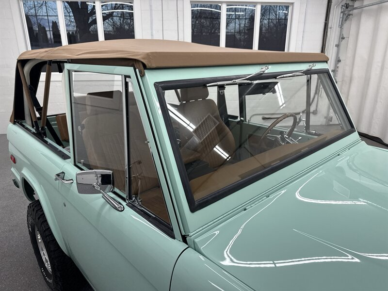 This beautifully restored 1967 Ford Bronco has just completed a meticulous, no-expense-spared overhaul and is now ready for its next owner. It features a brand-new Hartman body finished in Light Jade, mounted on a heavy-duty TDK frame with updated radius arms to blend classic Bronco character with modern durability. The interior is tastefully appointed with deerskin-tan pleated upholstery, black carpeting, and custom touches that elevate the cabin’s look and feel. Power comes from a new 302 crate engine with an upgraded roller cam and one-piece rear main seal, paired to a rebuilt C4 automatic transmission for smooth, reliable performance. Comfort and capability are further enhanced by Vintage Air conditioning, a tilt steering column, a new center console with Bluetooth audio, premium TBP locking hubs, a custom white-painted roll bar, and a new cinnamon Rampage soft top. The Bronco rides on 32" BFG KO2 tires wrapped around 15" polished alloy wheels, supported by a 2.5" Skyjacker lift, Borgeson heavy-duty power steering, an aluminum radiator, and Sniper EFI fuel injection. Every element of this build has been thoughtfully selected to create a Bronco that looks exceptional, drives confidently, and stands out in every way. Contact us today to schedule an appointment and experience this remarkable Bronco firsthand.