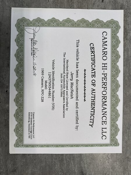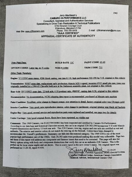 This 1969 Camaro Z28 has undergone a full rotisserie restoration and is beautifully refinished in Hugger Orange with painted white stripes over a black vinyl interior, creating a timeless and striking color combination. As one of the most sought-after muscle cars of its era, the 1969 Z28 is renowned for its rarity and performance pedigree—produced in limited numbers and specifically designed for Trans-Am racing homologation. This example features its numbers-matching 290hp 302 high-performance engine paired with a Muncie M20 4-speed manual transmission and the original 12-bolt 4.10 Positraction rear end, delivering the pure driving experience that made the Z28 legendary. Certified by Camaro expert Jerry MacNeish, this car retains an exceptional amount of its original factory components, further underscoring its authenticity and collector appeal. Please contact us with any questions or to schedule a private showing.