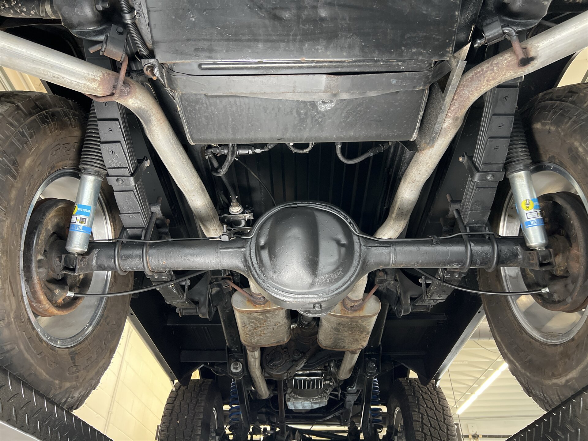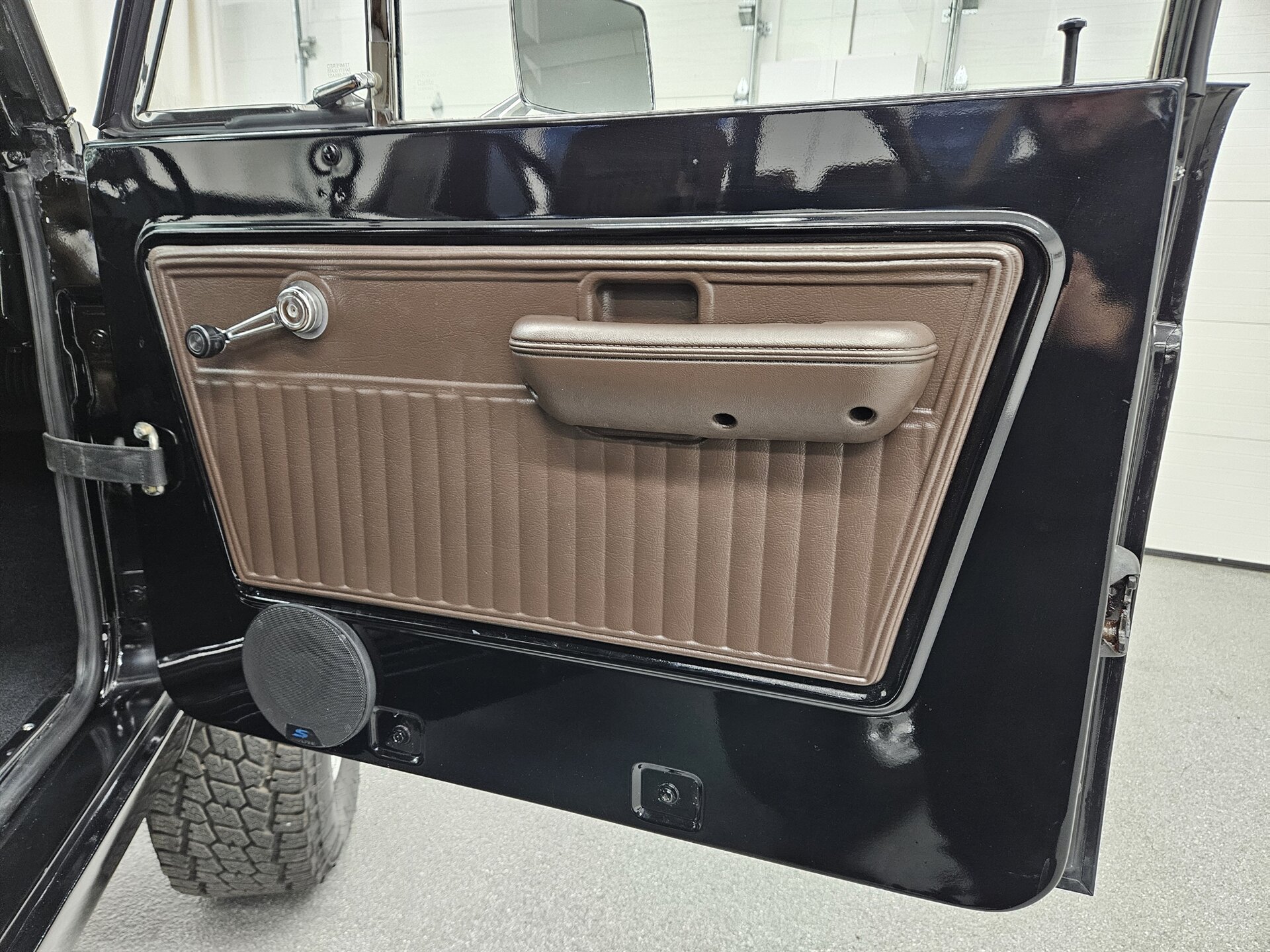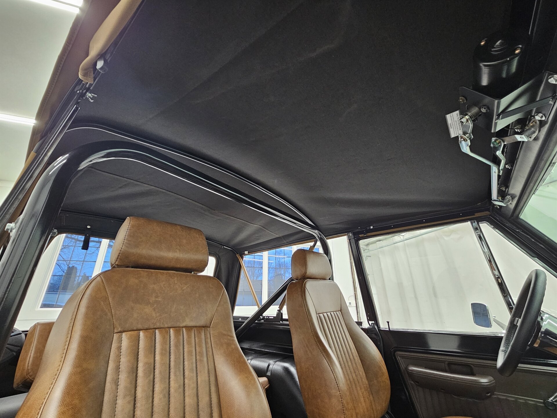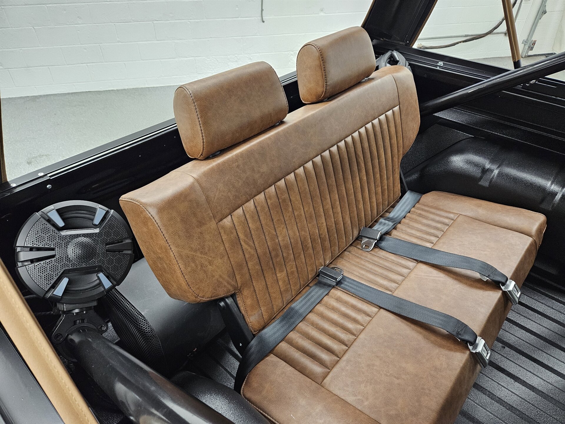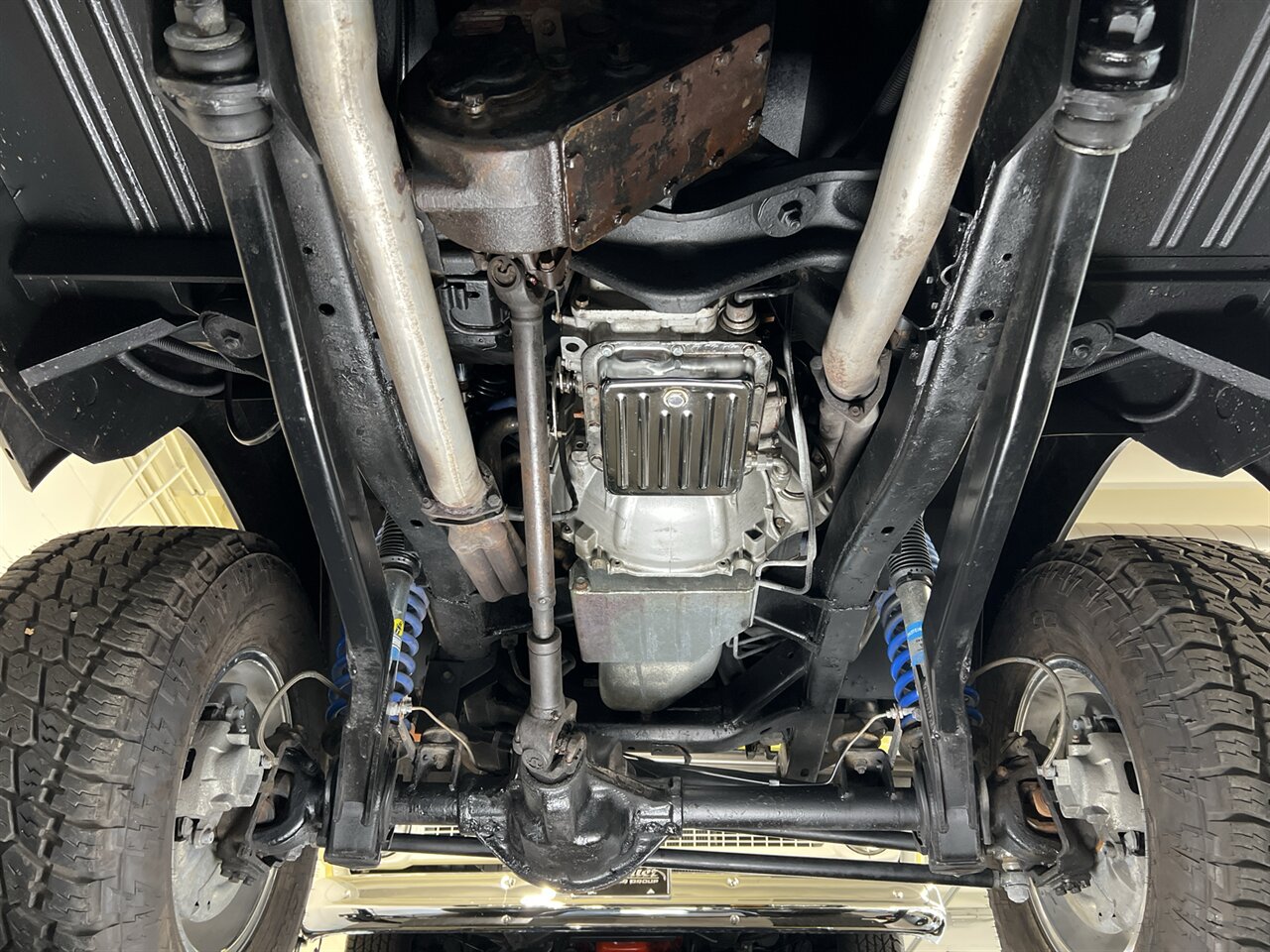 This 1969 Ford Bronco is a stunning marriage of classic aesthetics and modern performance, presented in a striking high-gloss black exterior over a deep walnut brown vinyl interior. Under the hood, the build is powered by a potent Blueprint 347 stroker engine featuring a Holley Sniper fuel injection system, paired with a C4 automatic transmission and a precision Sidewinder shifter. The cabin is thoughtfully appointed with a polished tilt steering column, a digital gauge display, and a premium saddle brown soft top. This Bronco commands a powerful presence on the road thanks to a 4-inch suspension lift with Bilstein shocks, sitting perfectly on 17-inch Ultra Wheels wrapped in aggressive all-terrain tires. Contact us to schedule your test drive today!