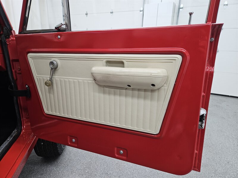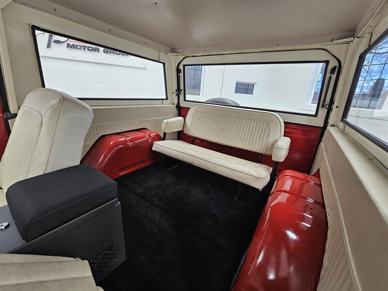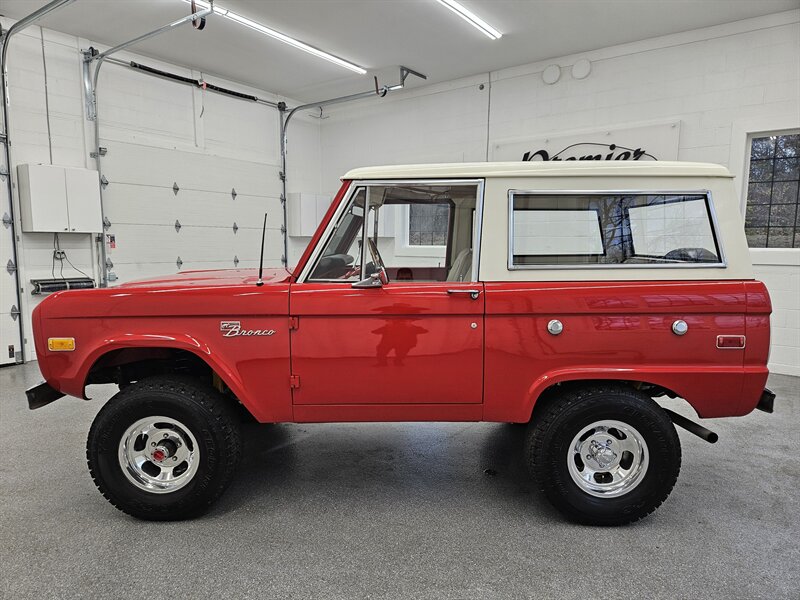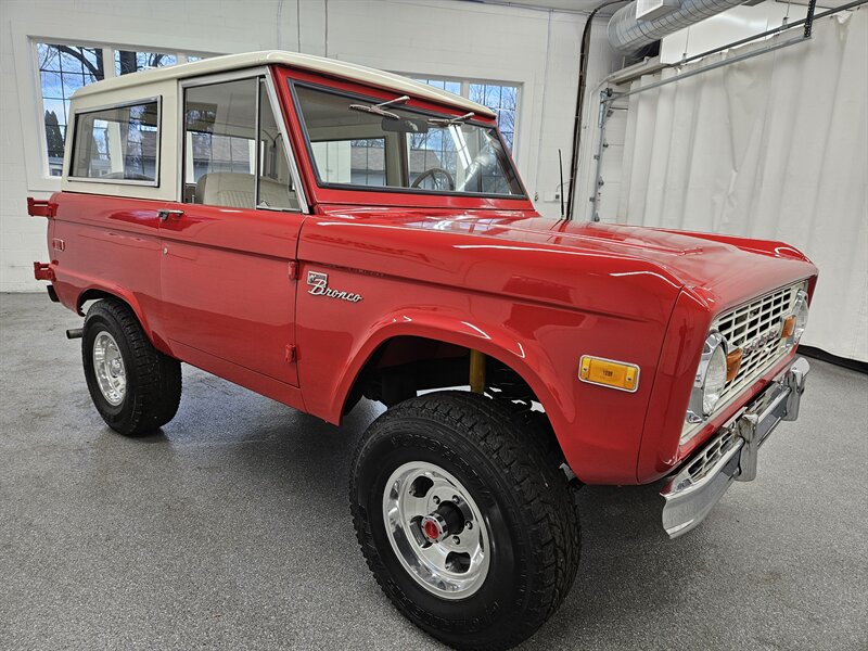 This previously restored 1973 Ford Bronco is a standout example of an early-generation classic, finished in a bright Red exterior with a clean White hardtop and a beautifully matching Parchment interior. With original miles and excellent presentation, this Bronco offers the perfect blend of authenticity and refreshed appeal. Power is supplied by Ford’s reliable 302 V8 paired with an automatic transmission, delivering smooth and easy performance. The factory power steering option further enhances drivability, making this Bronco more enjoyable on the road compared to many early models. The restoration highlights the Bronco’s iconic design while maintaining the classic lines and rugged stance that enthusiasts appreciate. Inside, the Parchment interior provides a clean, period-correct look that complements the exterior beautifully. Whether you are looking for a collectible vintage 4x4 or a head-turning weekend cruiser, this restored 1973 Ford Bronco is a strong example ready for its next owner. Call to schedule a showing today!