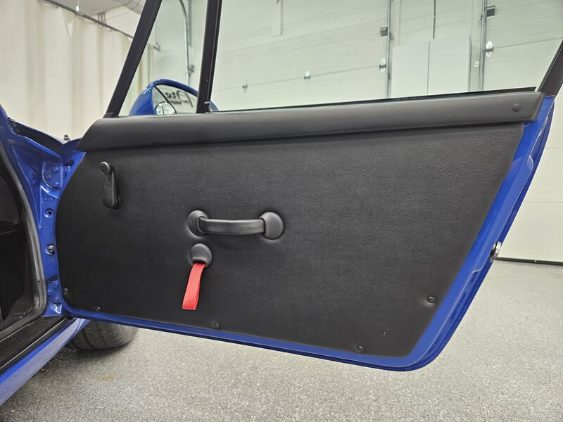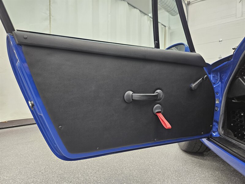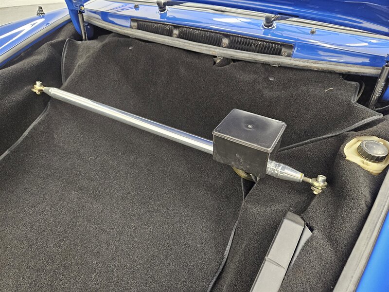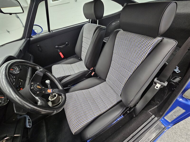 Inside, the car features a beautifully tailored cabin with Classic Touring Le Mans sport seats trimmed in black leather and houndstooth cloth. Additional highlights include RS-style door panels, a WEVO shifter, Personal Fittipaldi steering wheel, OMP pedals, a radio delete plate, and a fire extinguisher—creating a driver-focused environment that blends period style with purposeful upgrades.