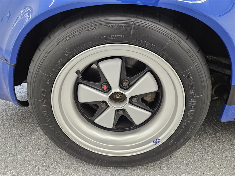 This RS-style 911 sits on 16" Braid Fuchs-style wheels—8" wide up front and 9" in the rear—wrapped in Yokohama Advan tires installed in 2024. Stopping power comes from ventilated 3.2 Carrera disc brakes at all four corners, with a new left rear caliper fitted in June 2025. Handling is enhanced by 23mm front and 28mm rear torsion bars, Bilstein sport shocks, Smart Racing Products sway bars, and a front strut tower brace.