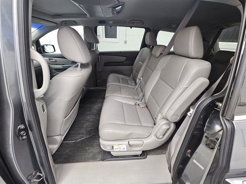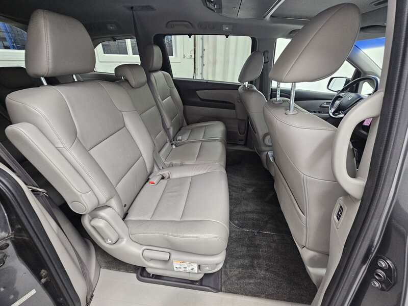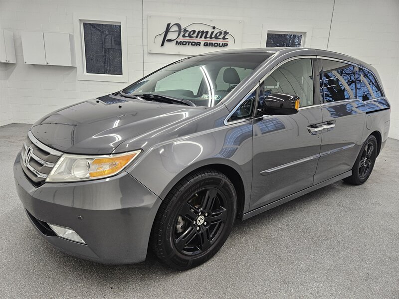 You’re viewing a freshly serviced 2012 Honda Odyssey Touring, offered for sale in a sleek metallic gray exterior paired with a light gray leather interior. This well-equipped Touring model includes a wide range of premium features such as power windows and locks, cruise control, hands-free phone connectivity, blind-spot monitoring, navigation, power and heated seats, dual-zone climate control, rear entertainment, a backup camera, alloy wheels, and more. Contact us today to schedule a test drive!