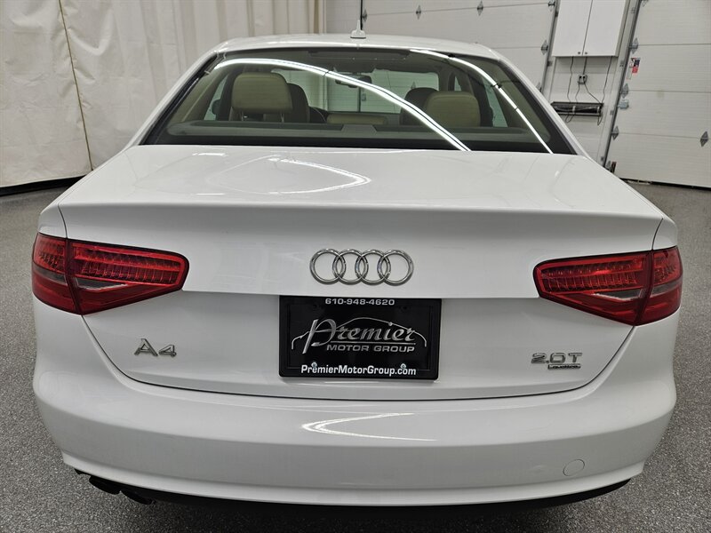 You are viewing a one-owner 2013 Audi A4 2.0T Quattro Premium Plus, now available for sale. This A4 is finished in a clean white exterior paired with a tan leather interior. The well-equipped Premium Plus trim offers a wide range of features, including power windows and locks, cruise control, power mirrors, a power sunroof, power-adjustable and heated seats, dual-zone climate control, hands-free phone connectivity, alloy wheels, and more. Call today to schedule your test drive and experience this Audi for yourself.