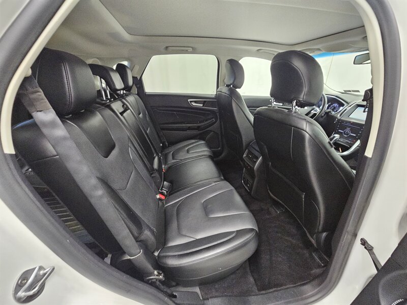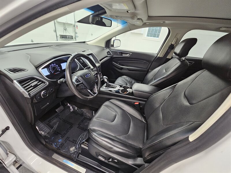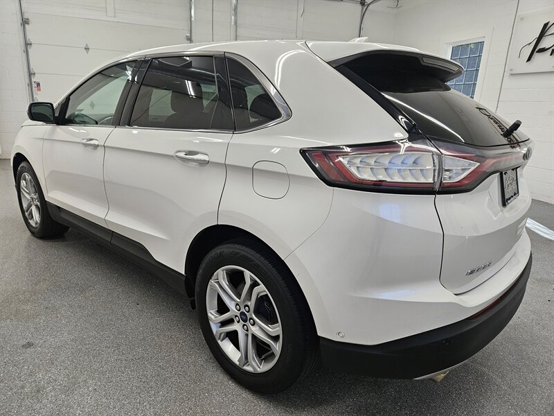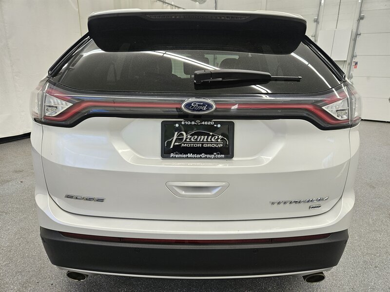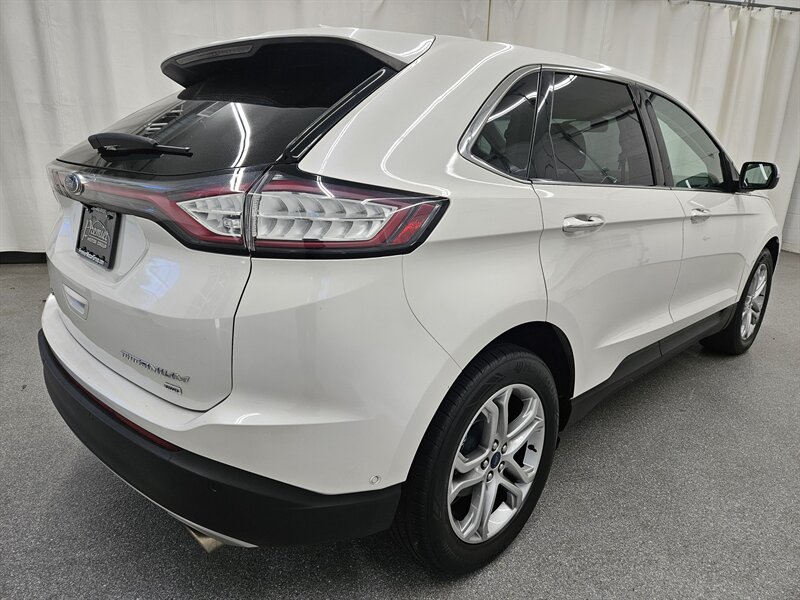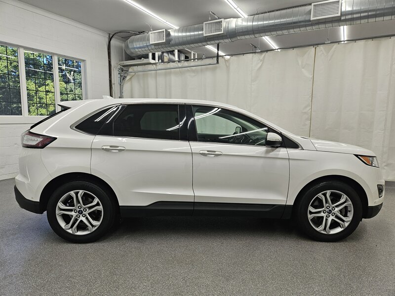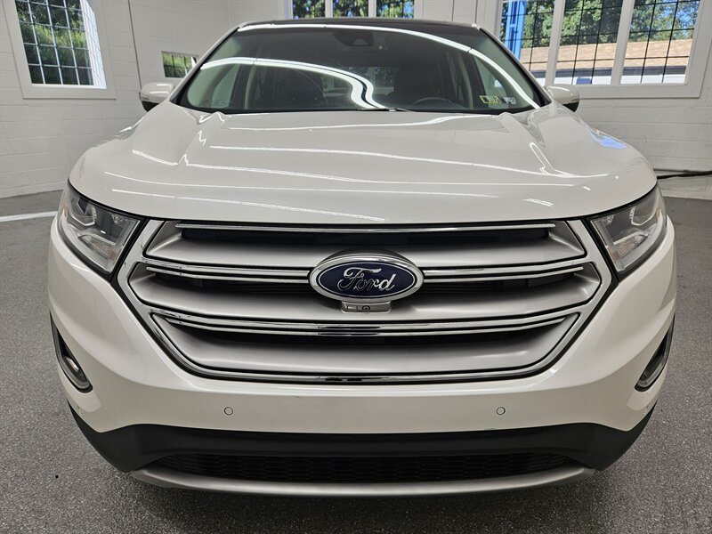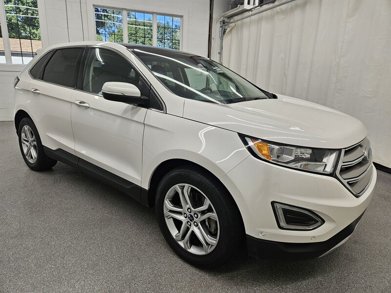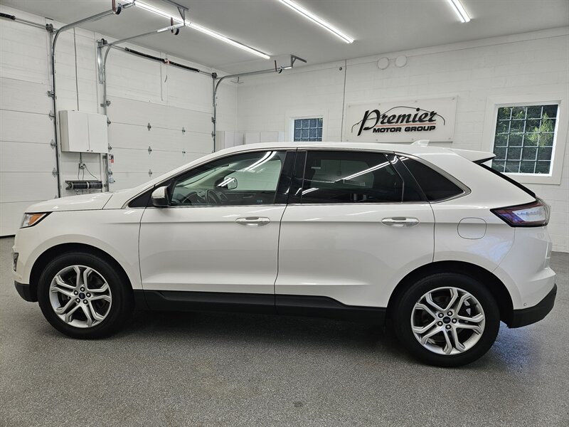 You are viewing a 2015 Ford Edge Titanium available for sale. This All Wheel Drive Edge is finished in a white platinum exterior over a black leather interior. The Titanium trim package is well equipped with features such: as remote keyless entry with push button start, panoramic sunroof, backup camera, bluetooth with voice recognition, power seating, remote start, Sony premium sound system, blind spot monitoring, lane departure, heated and cooled seats, parking sensors, and much more. Included in the asking price is a 3 month/3,000 mile limited warranty. Contact us to schedule a test drive today!