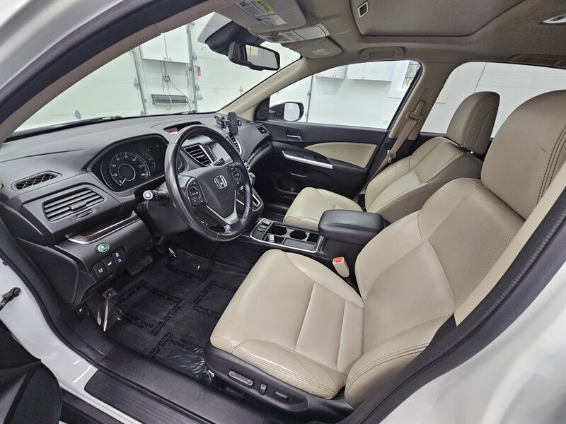 You are viewing a freshly serviced 2016 Honda CR-V Touring with all-wheel drive, now available for sale. This well-appointed SUV is finished in a pearl white exterior complemented by a beige leather interior. The Touring trim offers an impressive list of features, including power windows and locks, cruise control, power mirrors, a power sunroof, a power driver’s seat, heated seats, hands-free phone connectivity, a backup camera, front impact warning, blind-spot monitoring, a power tailgate, and stylish alloy wheels, along with many additional conveniences. Call today to schedule your test drive and experience everything this CR-V has to offer.