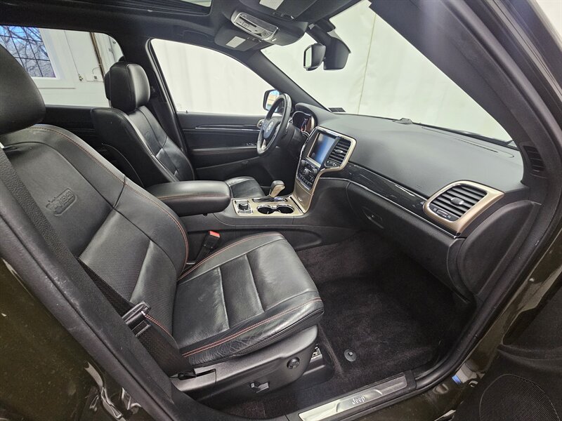 This one-owner 2016 Jeep Grand Cherokee Limited 75th Anniversary Edition is finished in a striking Deep Forest Green exterior over a black leather interior and comes impressively equipped. The special Anniversary package adds unique styling along with comfort and convenience features such as power windows, power locks, power mirrors, and power seats, as well as heated front seats and a heated steering wheel. Additional highlights include dual-zone climate control, blind-spot monitoring, hands-free phone connectivity, a panoramic sunroof, a backup camera, alloy wheels, cruise control, and more. This Grand Cherokee also includes a 3-month/3,000-mile limited warranty in the asking price, offering extra peace of mind. Call today to schedule your test drive.