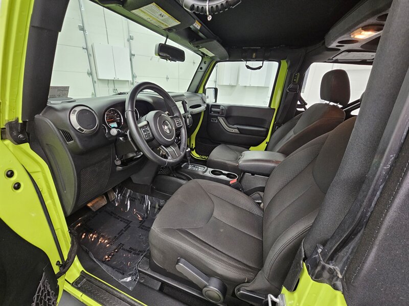 You’re looking at a freshly serviced 2016 Jeep Wrangler Sport, offered for sale in a striking lime green exterior paired with a black cloth interior. This 4x4 Sport model comes equipped with power windows, power locks, cruise control, power mirrors, alloy wheels, oversized all-terrain tires, a 2.5" Rough Country lift kit, and more. A 3-month/3,000-mile limited warranty is included in the asking price. Call today to schedule a test drive!
