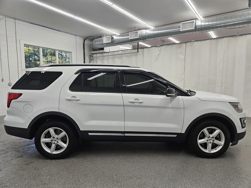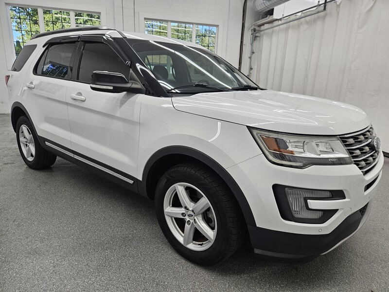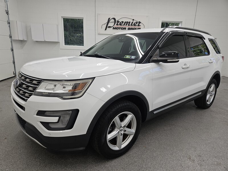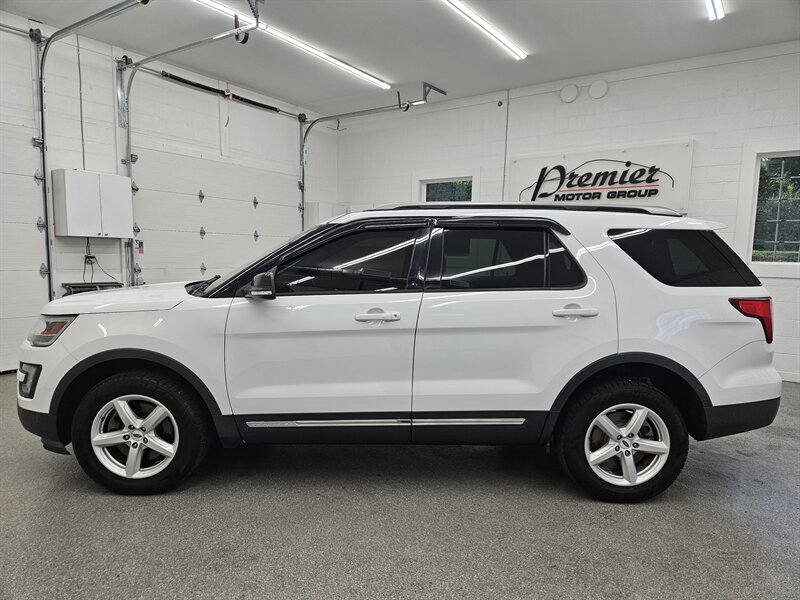Now available for sale is a freshly serviced 2017 Ford Explorer XLT 4x4, finished in a crisp white exterior paired with a black leather interior. This well-appointed SUV offers a wide range of desirable features, including power windows and locks, cruise control, hands-free phone connectivity, a blind spot monitoring system, power-adjustable and heated front seats, a navigation system, dual-zone front climate control, rear climate controls, a power rear liftgate, third-row seating, a backup camera, alloy wheels, and more. For added peace of mind, a 3-month/3,000-mile limited warranty is included in the asking price. Contact us to schedule your test drive today.