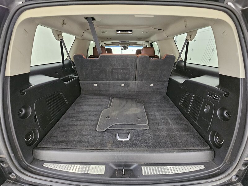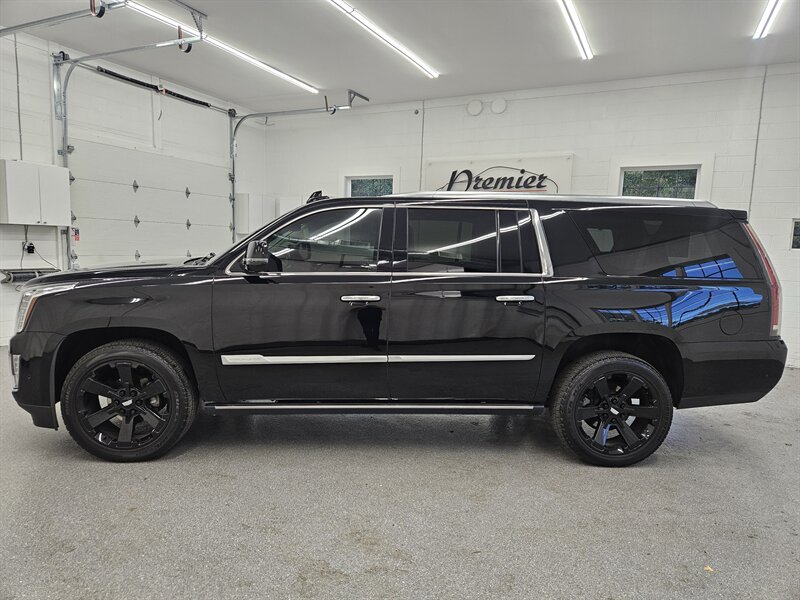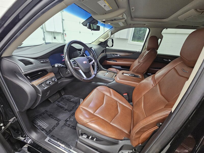 For sale is a freshly serviced 2018 Cadillac Escalade ESV Premium Luxury 4x4, featuring a sleek black exterior paired with a rich Kona Brown leather interior. This well-appointed SUV offers a full suite of premium features, including power windows, locks, mirrors, and seats, as well as cruise control and dual-zone climate control with additional rear climate settings. Comfort and convenience are elevated with heated and ventilated front seats, a heated steering wheel, power-folding third-row seating, and a rear-seat entertainment system. Safety and driver assistance features include a blind spot monitor, front and rear parking sensors, and a backup camera. Additional highlights include hands-free phone connectivity, a tow hitch, and striking 22" black alloy wheels. A 3-month/3,000-mile limited warranty is included in the asking price. Contact us today to schedule your test drive!