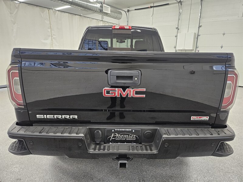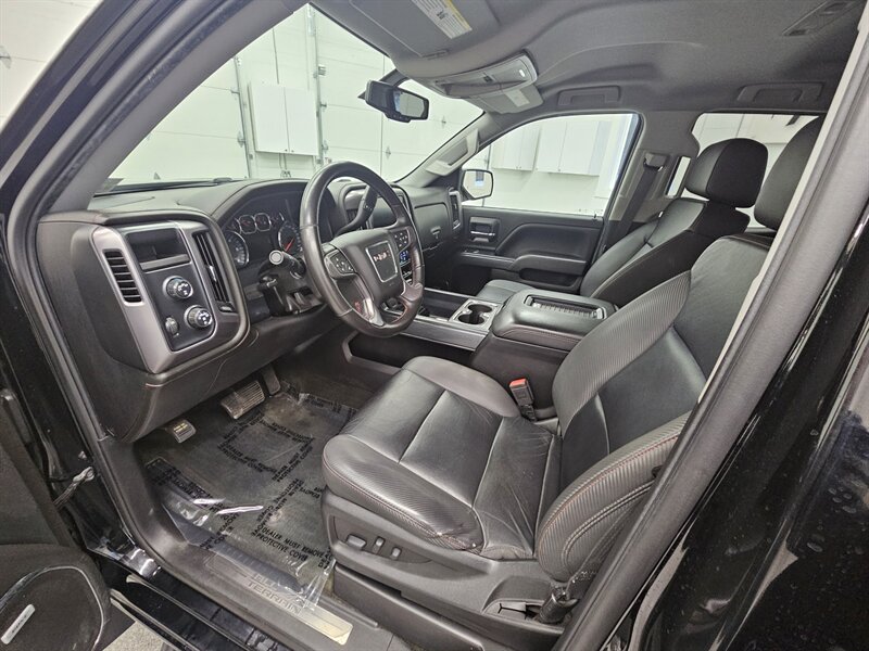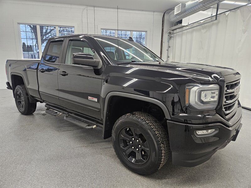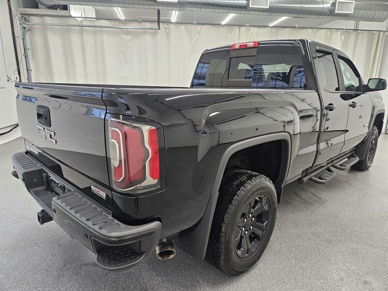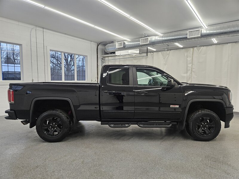 You are viewing a freshly serviced 2018 GMC Sierra 1500 Double Cab 4x4, now available for sale. This Sierra features a bold black exterior paired with a black sport leather interior. Equipped with the All Terrain package, this truck offers an impressive list of features, including a mild lift kit, remote keyless entry with remote start, backup camera, touchscreen display, parking sensors, tow package, wireless phone charging, heated seats and heated steering wheel, BOSE premium sound system, power memory seating, power-adjustable pedals, multi-zone automatic climate control, power sliding rear window, bed liner, running boards, and much more. A 3-month/3,000-mile limited warranty is included in the asking price. Call today to schedule your test drive.