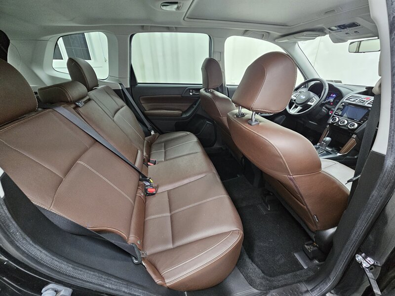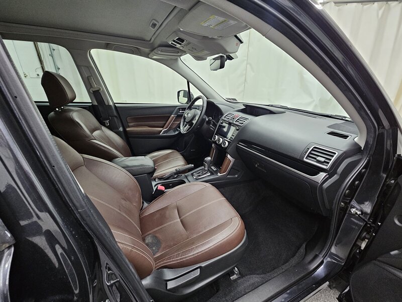 Available for sale is a meticulously cared-for 2018 Subaru Forester 2.5i Touring, ready for its next owner. This top-tier Touring model shines in a sophisticated Dark Charcoal Metallic exterior and features a luxurious, rich brown leather interior that has been freshly detailed. The vehicle just received a full service, ensuring it is in peak condition for immediate use. The Forester comes fully loaded with premium features for comfort, safety, and convenience, including a panoramic sunroof, heated power seats, dual climate control, and a full suite of safety technologies like a blind-spot monitor, lane departure warning, front impact detection, and active cruise control. It also includes modern essentials like hands-free phone connectivity, power accessories, alloy wheels, and a backup camera. For added peace of mind, a 3-month/3,000-mile limited warranty is included in the asking price. This reliable, safe, and fully-featured SUV is priced to sell. Call today to schedule your test drive!
