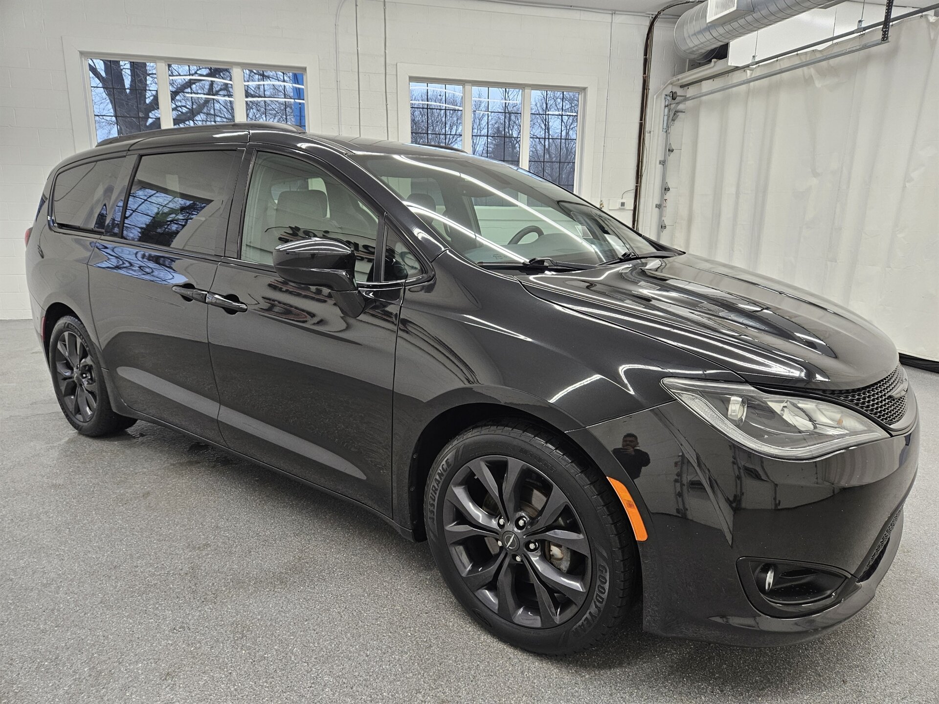 This one-owner 2019 Chrysler Pacifica Touring L Plus is a freshly serviced, family-ready minivan finished in a sophisticated Black Pearl exterior with a matching black leather interior. Designed for both comfort and versatility, this seven-passenger vehicle comes exceptionally well-equipped with premium features including power-adjustable heated seats, a heated steering wheel, and heated second-row seating to ensure every passenger travels in luxury. The modern cabin is anchored by a 7-inch touchscreen display featuring Apple CarPlay integration and hands-free connectivity, while a dedicated rear entertainment system keeps the back rows occupied on long journeys. Performance and safety are at the forefront of this Pacifica, which boasts essential driver-assist technologies such as a backup camera, blind-spot monitoring, and hill start assist. The exterior is accented by stylish black alloy wheels that complement its sleek profile. For added peace of mind, the asking price includes a 3-month or 3,000-mile limited warranty. Experience the perfect blend of utility and refinement by calling to schedule your test drive today.