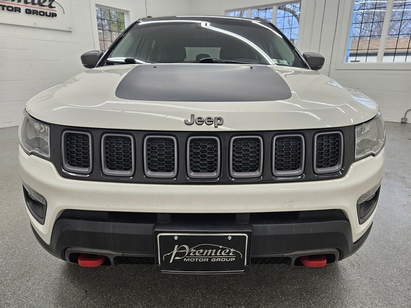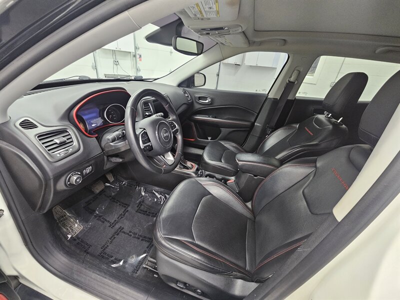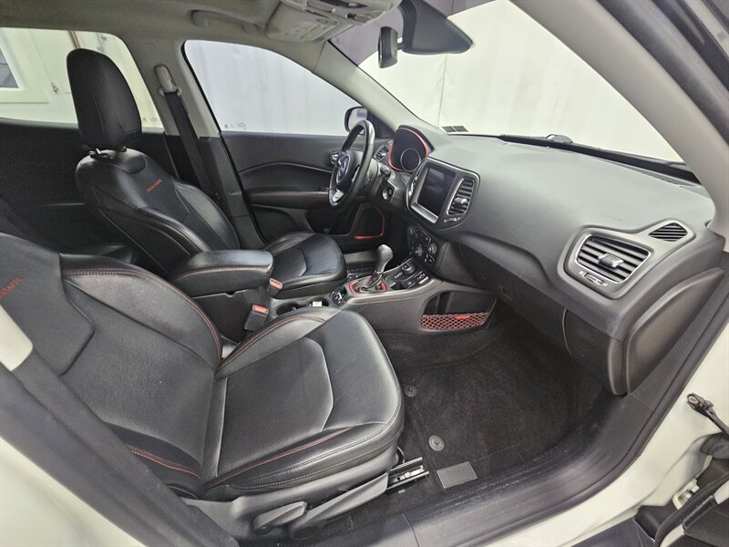You are viewing a freshly serviced 2019 Jeep Compass Trailhawk, now available for sale. Finished in a bright white exterior with a black leather interior, this well-equipped Trailhawk offers a comfortable and capable driving experience. Features include power windows and locks, cruise control, hands-free phone connectivity, an 8.4-inch touchscreen display, heated seats and steering wheel, a power driver’s seat, panoramic sunroof, all-terrain tires, alloy wheels, and a backup camera, among many others. For added peace of mind, the asking price includes a 3-month/3,000-mile limited warranty. Call today to schedule your test drive.