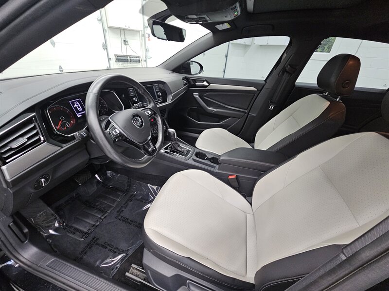 This one-owner 2021 Volkswagen Jetta R-Line is now available for sale, featuring a sleek black exterior paired with a light gray and black two-tone leatherette interior. As an R-Line model, it comes well-equipped with a variety of premium features, including a blind spot monitor, backup camera, heated seats, hands-free phone connectivity, power sunroof, dual-zone climate control, power windows and locks, cruise control, power mirrors, and 17" alloy wheels. To provide added peace of mind, a 3-month/3,000-mile limited warranty is included in the asking price. Contact us today to schedule your test drive!